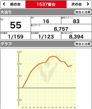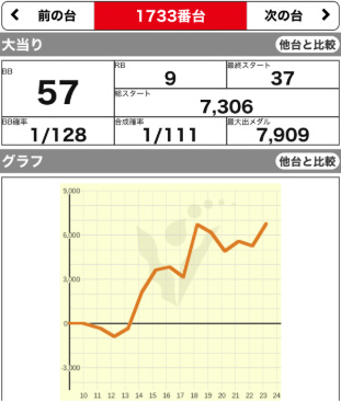 9/23 | 火 | 元祖 イナズマスロット (咲) (ハーレムエース) | +17300 +3500 | +4300 – | 9300G 9400G | 116% 112% |