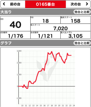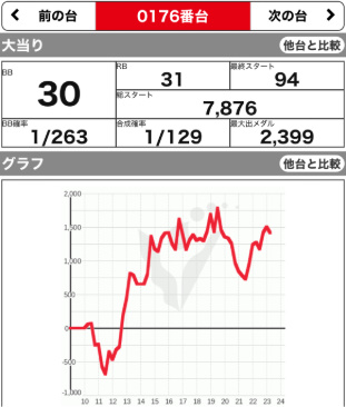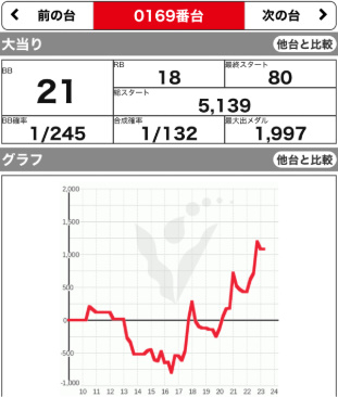 169 ⭕ | マイジャグ | 5600G | +1100 | 21:18 1/131.4 | 106.3% |