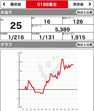 186 ⭕ | マイジャグ | 5900G | +1300 | 25:16 1/131.1 | 107.4% |