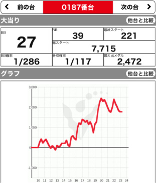 187 💮 | マイジャグ | 8300G | +1800 | 27:39 1/116.5 | 106.9% |