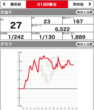 189 ⭕ | マイジャグ | 7100G | +1300 | 27:23 1/130.0 | 106.0% |