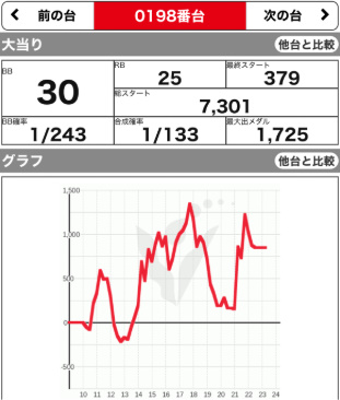 198 ⭕ | マイジャグ | 7900G | +900 | 30:25 1/132.3 | 103.5% |