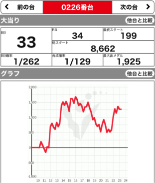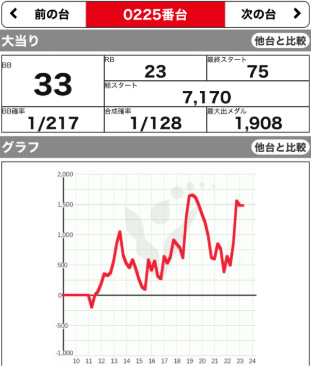 225 💮 | アイム ジャグ | 7800G | +1500 | 33:23 1/127.6 | 106.1% |