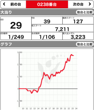 238 💮 | アイム ジャグ | 7900G | +2700 | 29:39 1/105.5 | 111.2% |