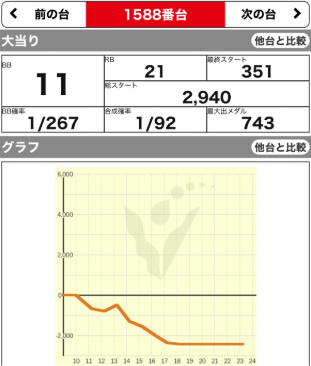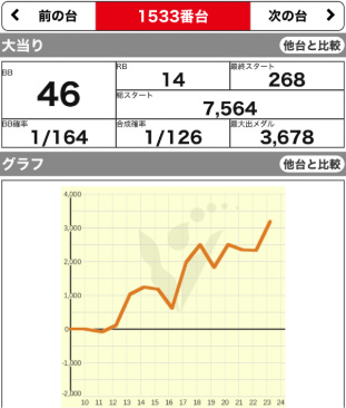 9/23 | 火 | 元祖 イナズマスロット (咲) (ハーレムエース) | +17300 +3500 | +4300 – | 9300G 9400G | 116% 112% |
