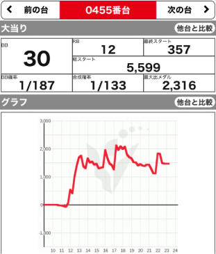 455 ⭕ | アイムジャグ | 6100G | +1500 | 30:12 1/137 107.7% |