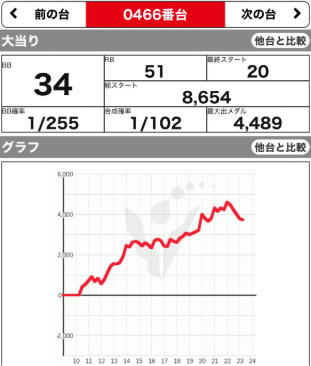 466 💮 | マイジャグ | 9500G | +3600 | 34:51 1/105 112.7% |