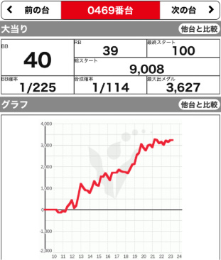 469 💮 | マイジャグ | 9800G | +3200 | 40:39 1/117 110.7% |