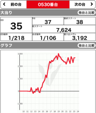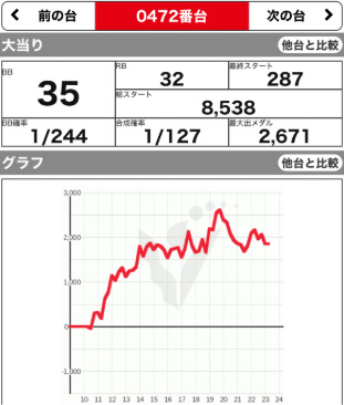 472 💮 | アイムジャグ | 9300G | +1800 | 35:32 1/130 106.5% |
