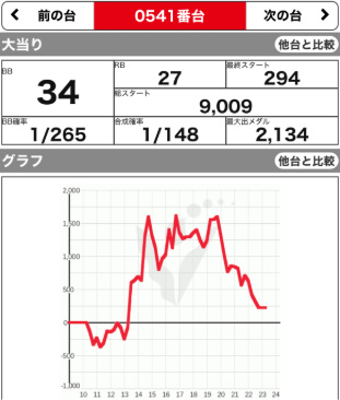 541 ⭕ | マイジャグ | 9700G | +300 | 34:27 1/149 100.8% |