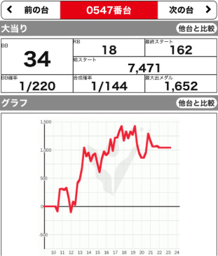 547 ⭕ | マイジャグ | 8100G | +1100 | 34:18 1/146 104.2% |