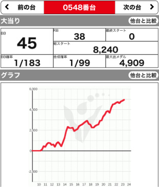 548 💮 | マイジャグ | 9100G | +4800 | 45:38 1/103 117.6% |