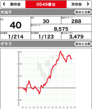 549 💮 | マイジャグ | 9300G | +2400 | 40:30 1/125 108.4% |