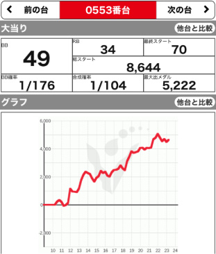 553 💮 | マイジャグ | 9500G | +4500 | 49:34 1/108 115.7% |