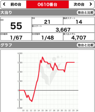 6/11 | 集計67台 | +218,909 | +3,267 |