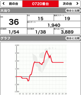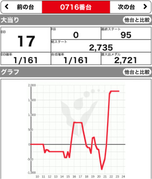 7/16 | 集計40台(5機種) | +55,700 | +1,400 |