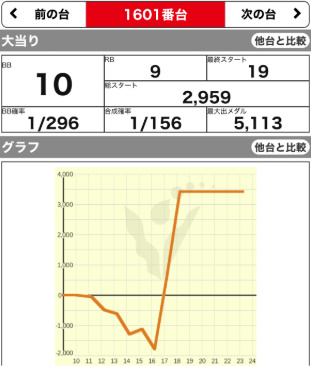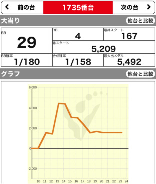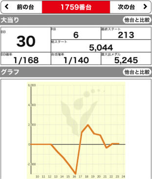 9/23 | 火 | 元祖 イナズマスロット (咲) (ハーレムエース) | +17300 +3500 | +4300 – | 9300G 9400G | 116% 112% |