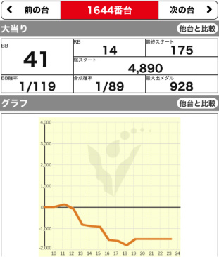 1644 ⭕ | 北斗の拳 | 6300G | -1500 | 92.3% |