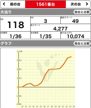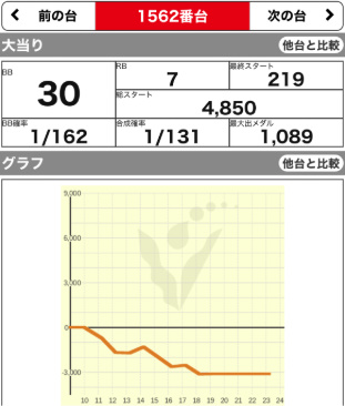 1562 ▲ | スーパーBJ | 6100G | -3100 | 83.5% |