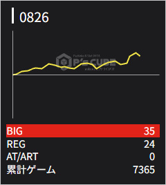 826 💮 | マイジャグ | 7400G | +1900 | 35:24 1/124 | 108.6% |