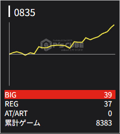 835 💮 | マイジャグ | 8400G | +4200 | 39:37 1/110 | 116.7% |