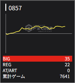 857 ⭕ | マイジャグ | 7700G | +1600 | 35:22 1/134 | 106.9% |