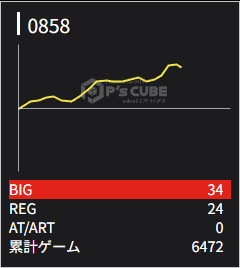 858 💮 | マイジャグ | 6500G | +2800 | 34:24 1/111 | 114.4% |