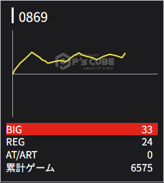 869 💮 | マイジャグ | 6600G | +2200 | 33:24 1/115 | 111.1% |