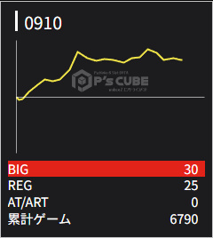 834 ⭕ | マイジャグ | 6700G | +1100 | 30:20 1/133 | 105.5% |