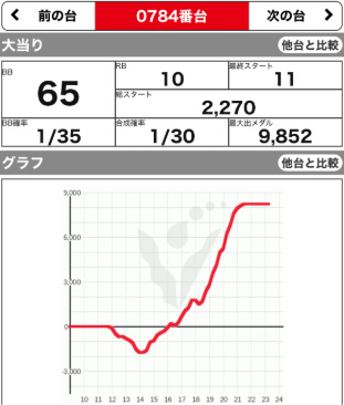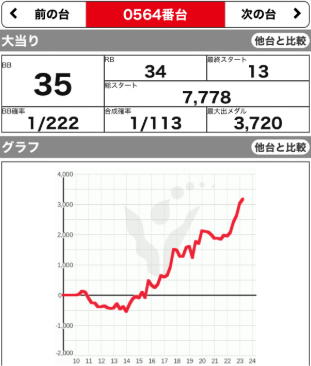 | 564 💮 | マイジャグ | 8500G | +3100 | 35:34 1/113 112.1% |