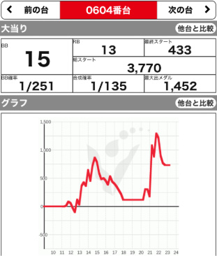 | 604 ⭕ | アイム ジャグ | 4100G | +800 | 15:13 1/135 105.8% |