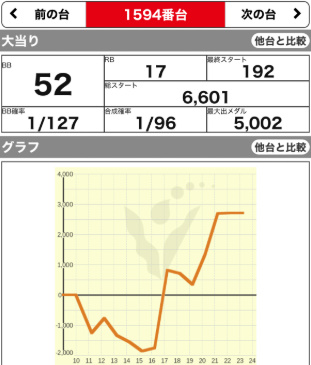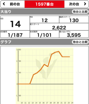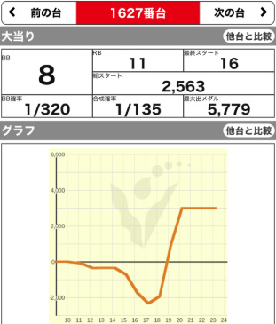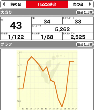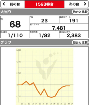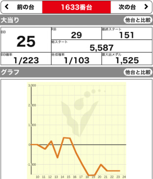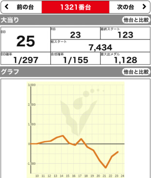 | 1321 ▲ | マイジャグ | 7900G | -400 | 25:23 1/155 98.3% |