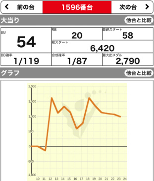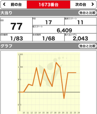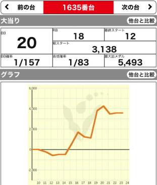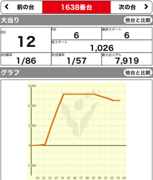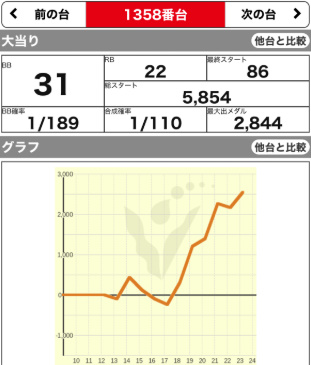 | 1358 💮 | マイジャグ | 6400G | +2500 | 31:22 1/110 112.8% |