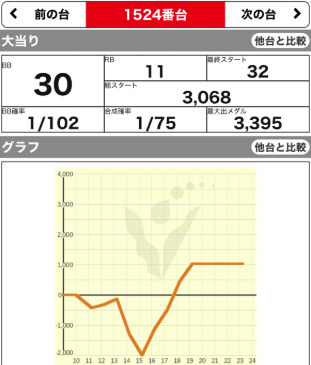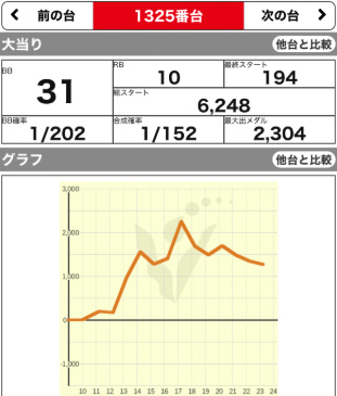 | 1325 ⭕ | マイジャグ | 6800G | +1300 | 31:10 1/152 106.1% |