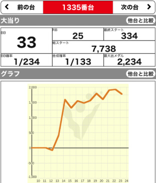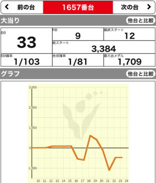 | 1335 ⭕ | マイジャグ | 8400G | +1800 | 33:25 1/133 106.9% |