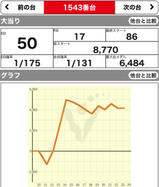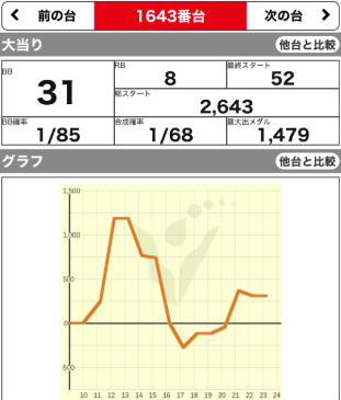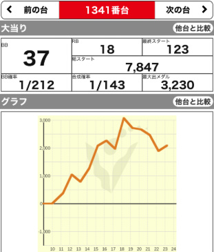 | 1341 ⭕ | マイジャグ | 8500G | +2100 | 37:18 1/143 107.9% |