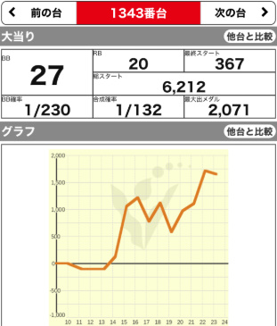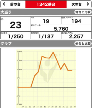 | 1342 ⭕ | マイジャグ | 6200G | +900 | 23:19 1/137 104.8% |
