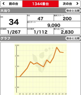 | 1344 💮 | マイジャグ | 9800G | +2300 | 34:47 1/112 107.6% |