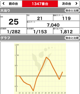 | 1347 ▲ | マイジャグ | 7500G | +200 | 25:21 1/153 100.8% |
