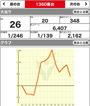 | 1360 ▲ | マイジャグ | 6900G | +400 | 26:20 1/139 101.9% |