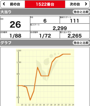 | 1522 💮 | 沖ドキ DUOアンコール | 3900G | +1300 | 111.3% |