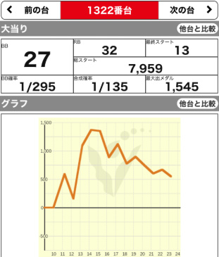 | 1322 ⭕ | マイジャグ | 8500G | +600 | 102.1% | 27:32 1/135 |