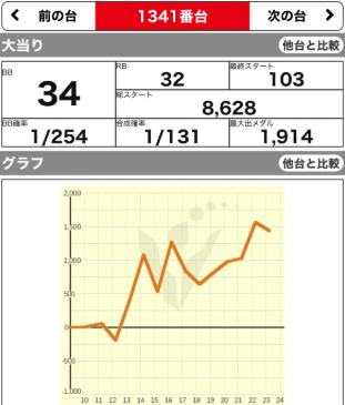| 1341 ⭕ | マイジャグ | 9300G | +1400 | 105.0% | 34:32 1/131 |