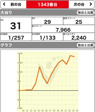 | 1343 ⭕ | マイジャグ | 8600G | +1800 | 106.9% | 31:29 1/133 |