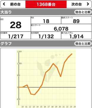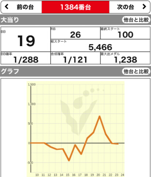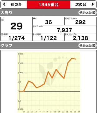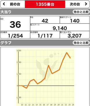 | 1355 💮 | マイジャグ | 9900G | +2300 | 107.7% | 36:42 1/117 |