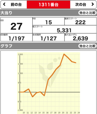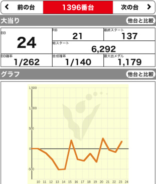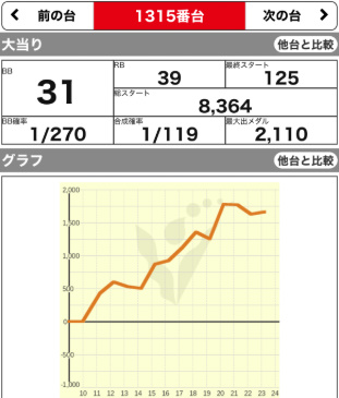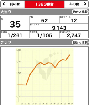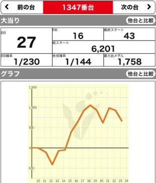 | 1347 ⭕ | マイジャグ | 6700G | +700 | 103.2% | 27:16 1/144 |