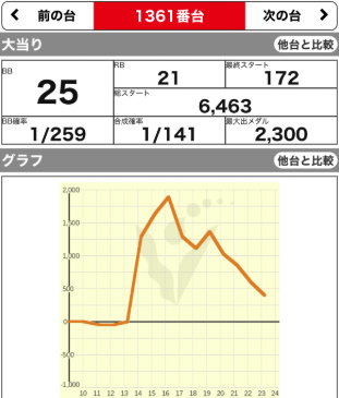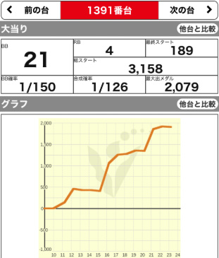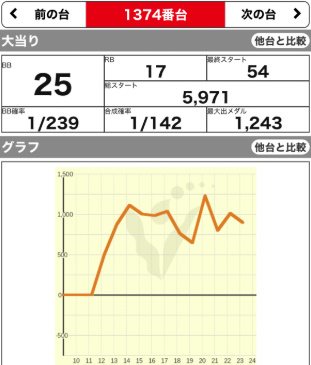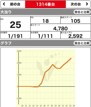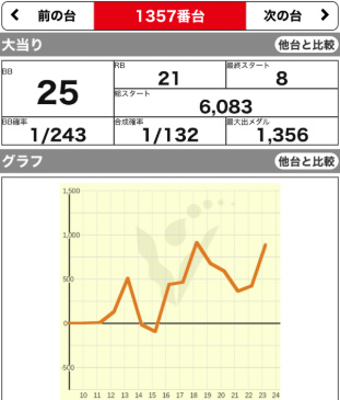 | 1357 ⭕ | マイジャグ | 6600G | +900 | 104.4% | 25:21 1/132 |