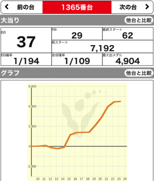 | 1325 ⭕ | マイジャグ | 8600G | +1700 | 106.4% | 37:22 1/134 |