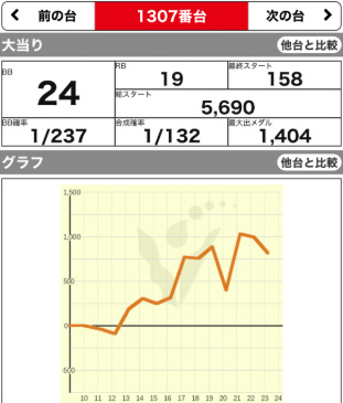 | 1307 ⭕ | ミラクル ジャグ | 6200G | +800 | 104.3% | 24:19 1/132 |