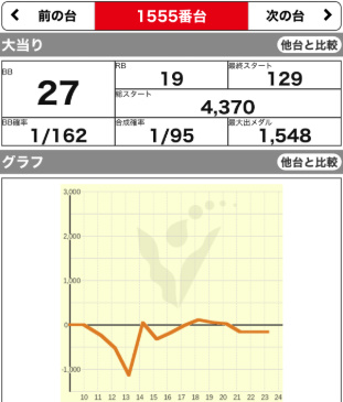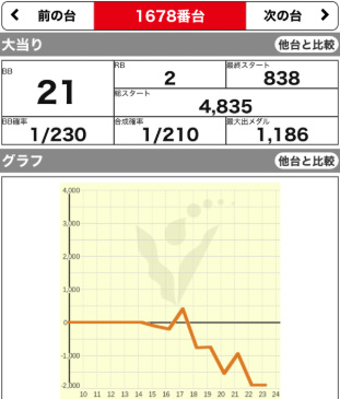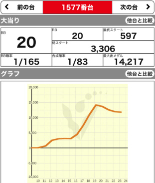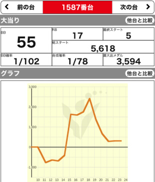 | 9/23 | 火 | 元祖 イナズマスロット (咲) (ハーレムエース) | +17300 +3500 | +4300 – | 9300G 9400G | 116% 112% |